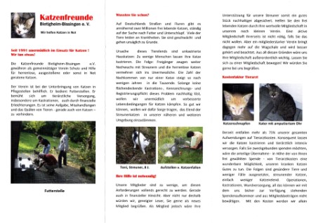 Unser neuer Flyer kann von Ihnen angefordert werden. Wir suchen Tierfreunde, die uns bei der Verteilung des Flyers z.B.in Arzt- und Tierarztpraxen, Geschäften, Supermärkten, Apotheken, Tankstellen, Bahn oder wo es sonst noch sinnvoll sein könnte, behilflich sind. Bitte klicken Sie in der Menüleiste links auf unser Kontakt-Formular. und bestellen Sie unseren Flyer.